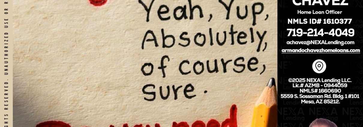 answer without - Armando Chavez -Home Loan OfficerHi, my name is Armando Chavez. I’m a Loan Officer with NEXA Lending LLC., offering personalized mortgage solutions, fast customized quotes, great rates and service with integrity.