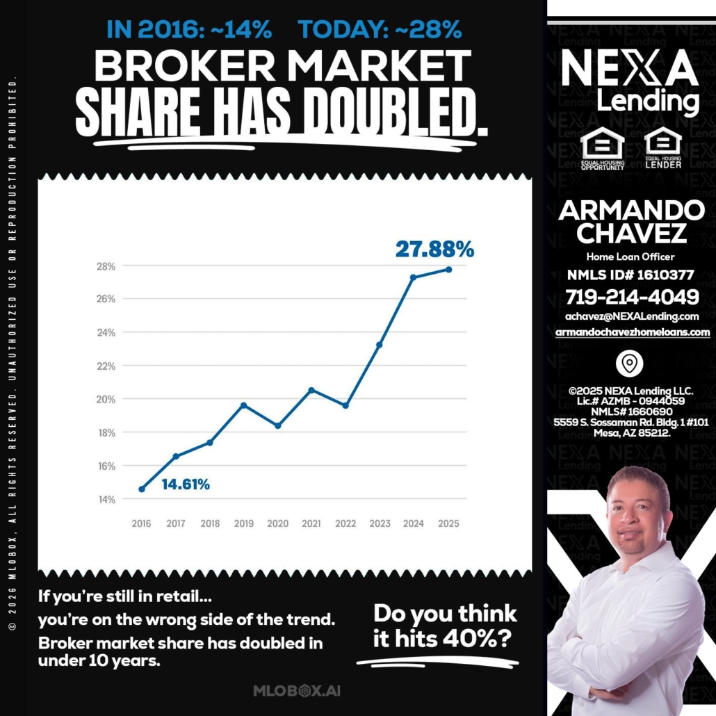 Hi, my name is Armando Chavez. I’m a Loan Officer with NEXA Lending LLC., offering personalized mortgage solutions, fast customized quotes, great rates and service with integrity.