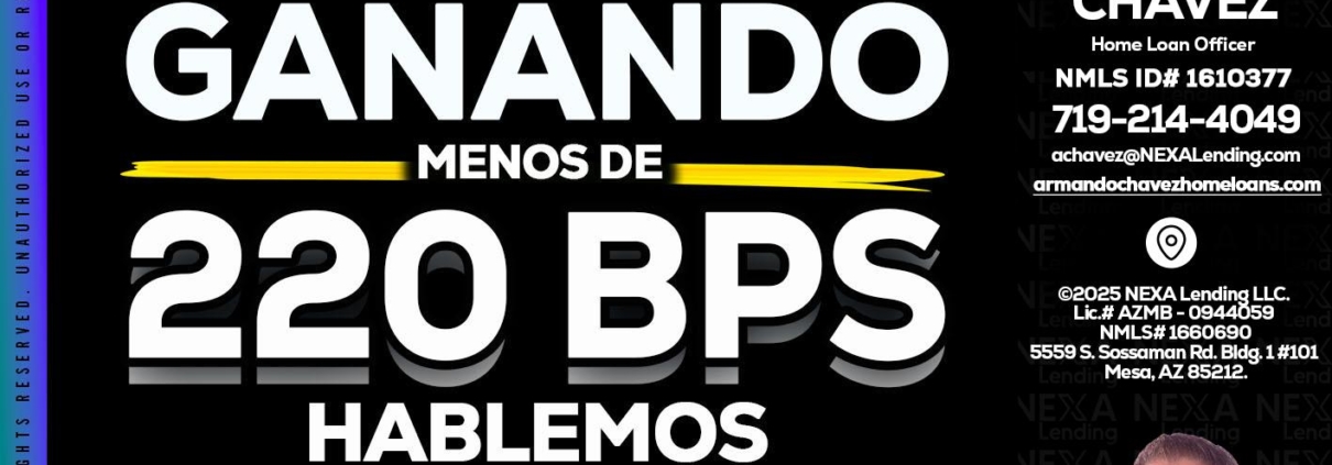 Hi, my name is Armando Chavez. I’m a Loan Officer with NEXA Lending LLC., offering personalized mortgage solutions, fast customized quotes, great rates and service with integrity.
