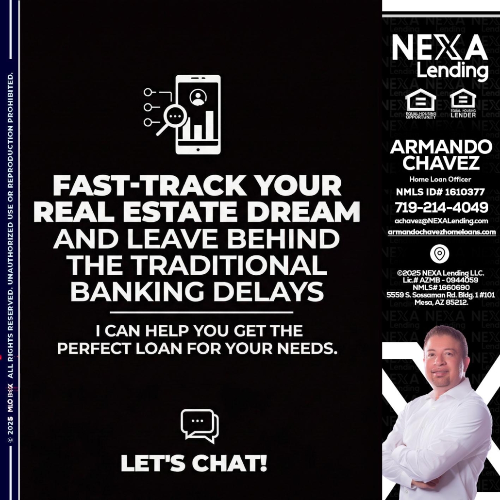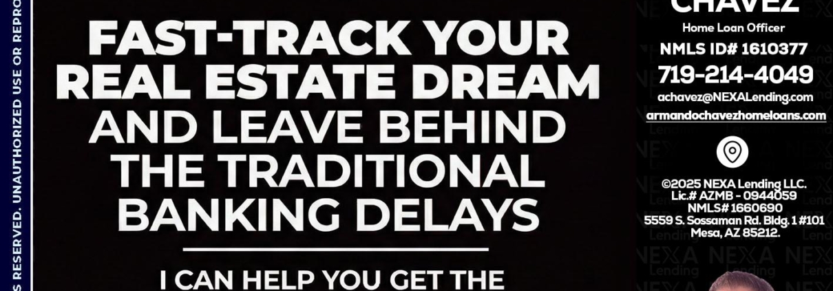 Hi, my name is Armando Chavez. I’m a Loan Officer with NEXA Lending LLC., offering personalized mortgage solutions, fast customized quotes, great rates and service with integrity.