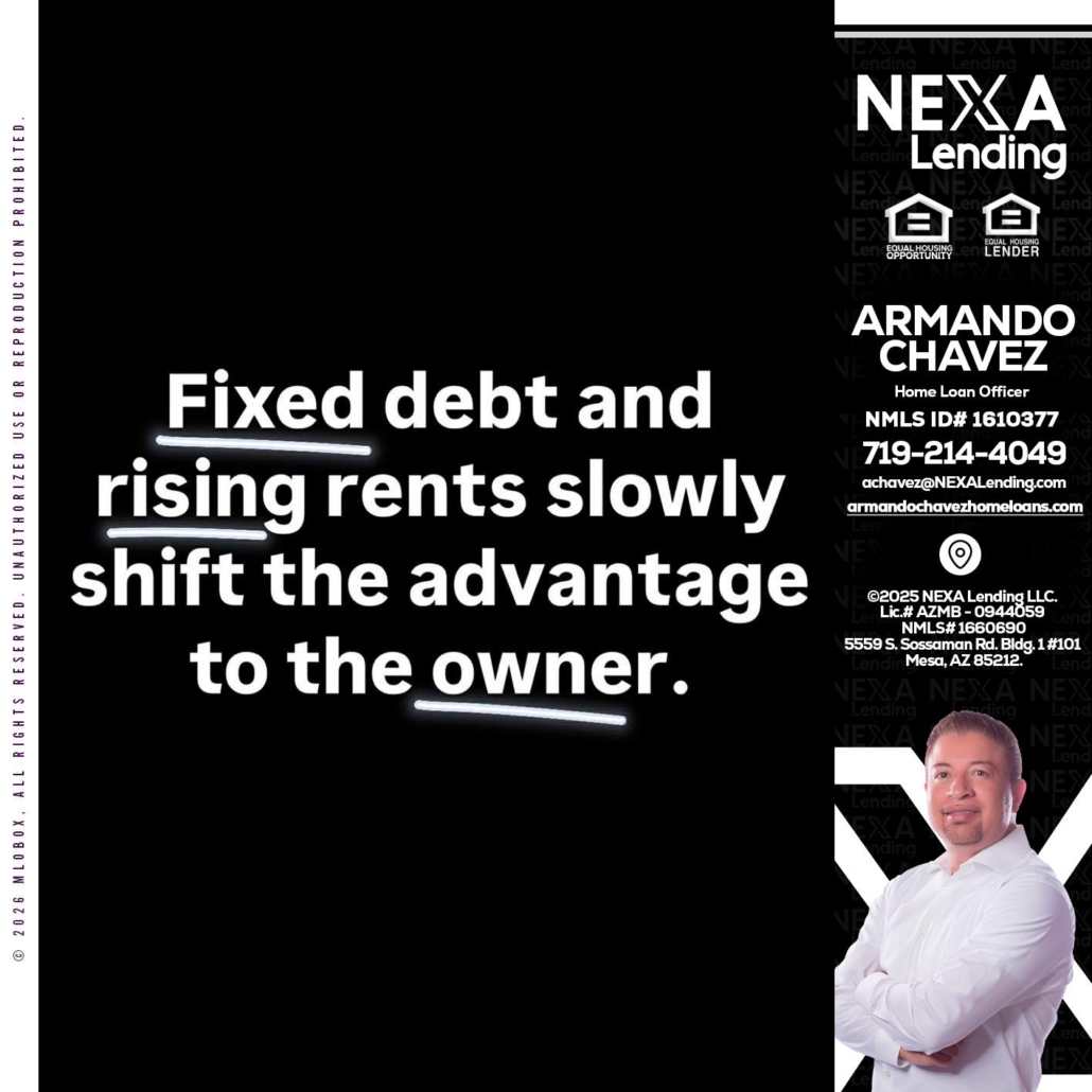 Hi, my name is Armando Chavez. I’m a Loan Officer with NEXA Lending LLC., offering personalized mortgage solutions, fast customized quotes, great rates and service with integrity.