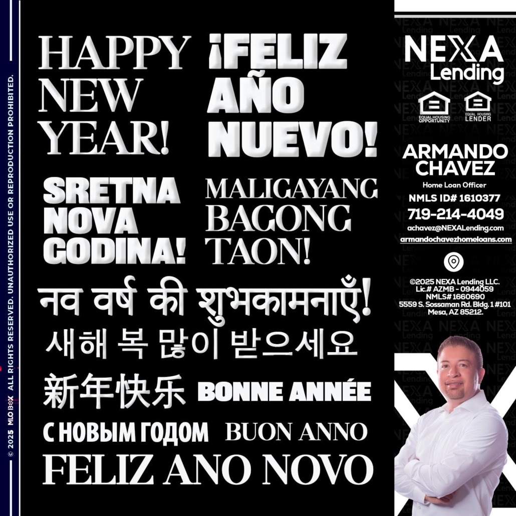HAPPY NEW YEAR - Armando Chavez -Home Loan OfficerHi, my name is Armando Chavez. I’m a Loan Officer with NEXA Lending LLC., offering personalized mortgage solutions, fast customized quotes, great rates and service with integrity.