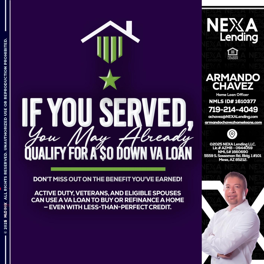 Hi, my name is Armando Chavez. I’m a Loan Officer with NEXA Mortgage LLC., offering personalized mortgage solutions, fast customized quotes, great rates and service with integrity.