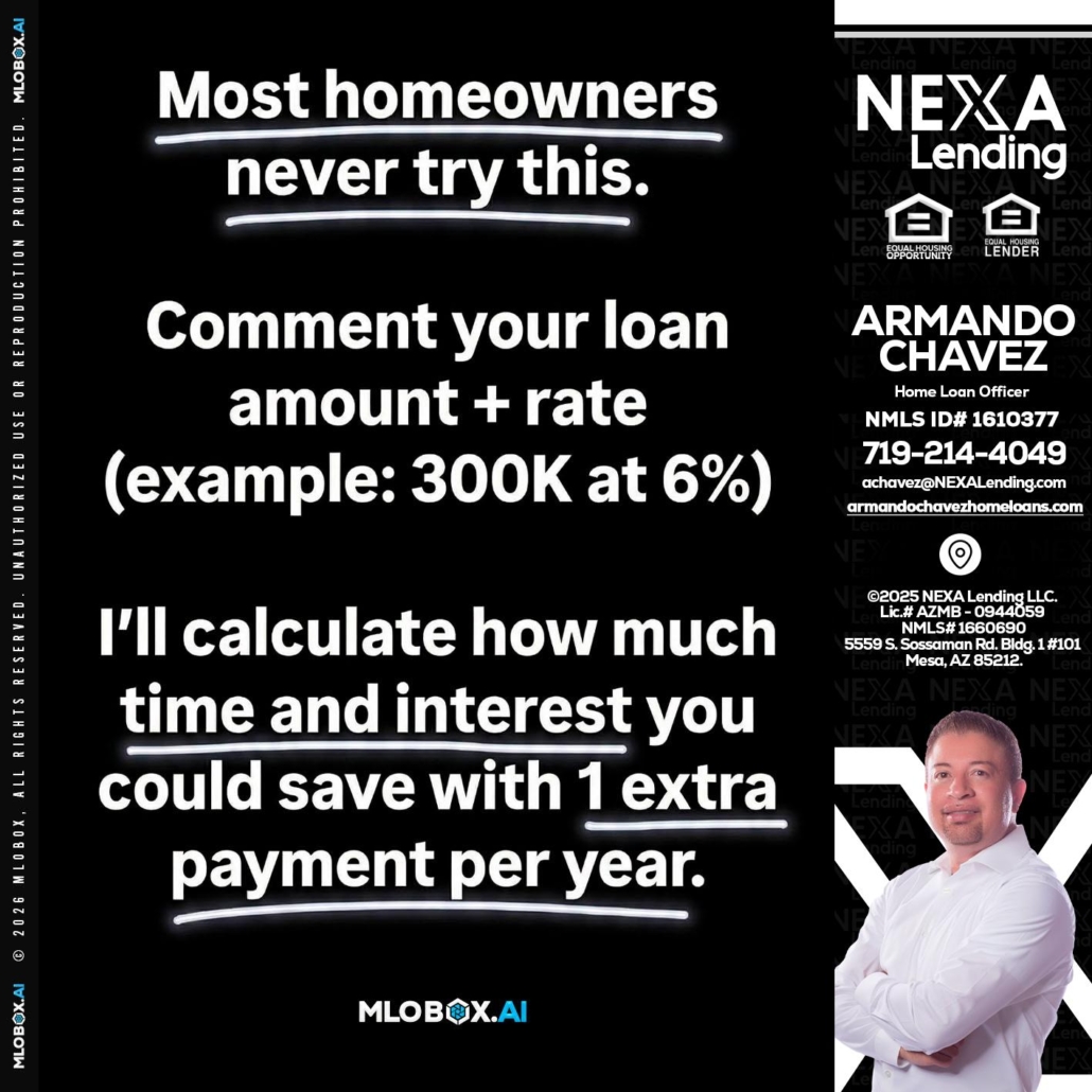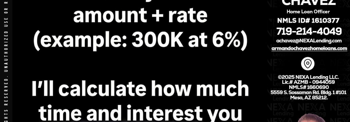 Hi, my name is Armando Chavez. I’m a Loan Officer with NEXA Lending LLC., offering personalized mortgage solutions, fast customized quotes, great rates and service with integrity.