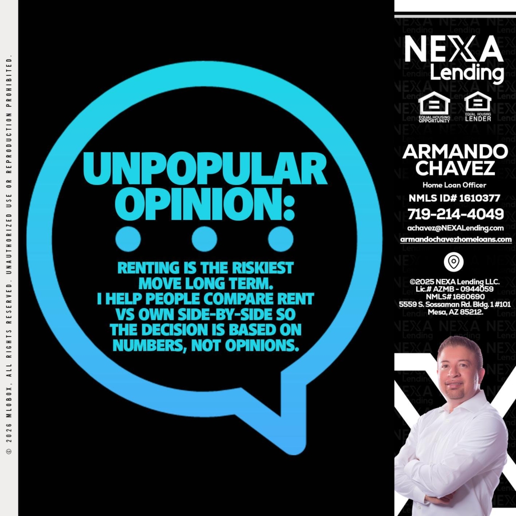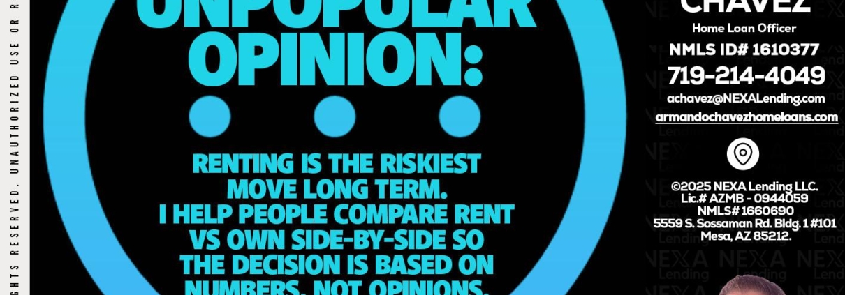 Hi, my name is Armando Chavez. I’m a Loan Officer with NEXA Lending LLC., offering personalized mortgage solutions, fast customized quotes, great rates and service with integrity.